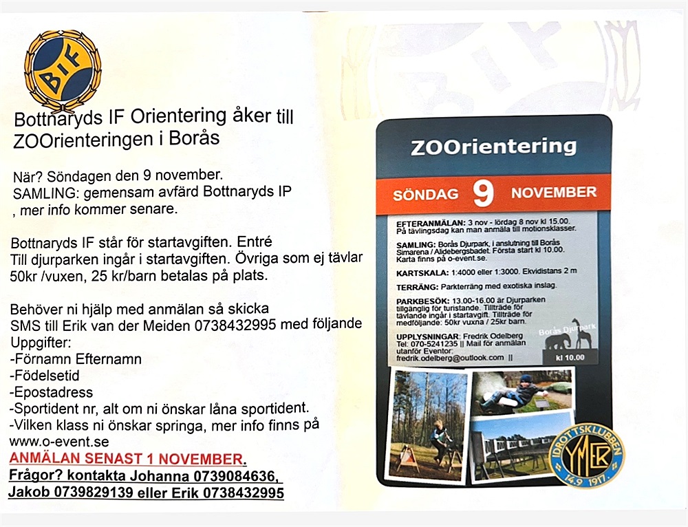 Orienteringsträningarna är slut för säsongen men vi planerar att köra en kvällsorientering med reflexbana den 22 oktober samt att vi planerar att åka till Zoo- orienteringen i borås djurpark den 9 november. Mer info kommer.