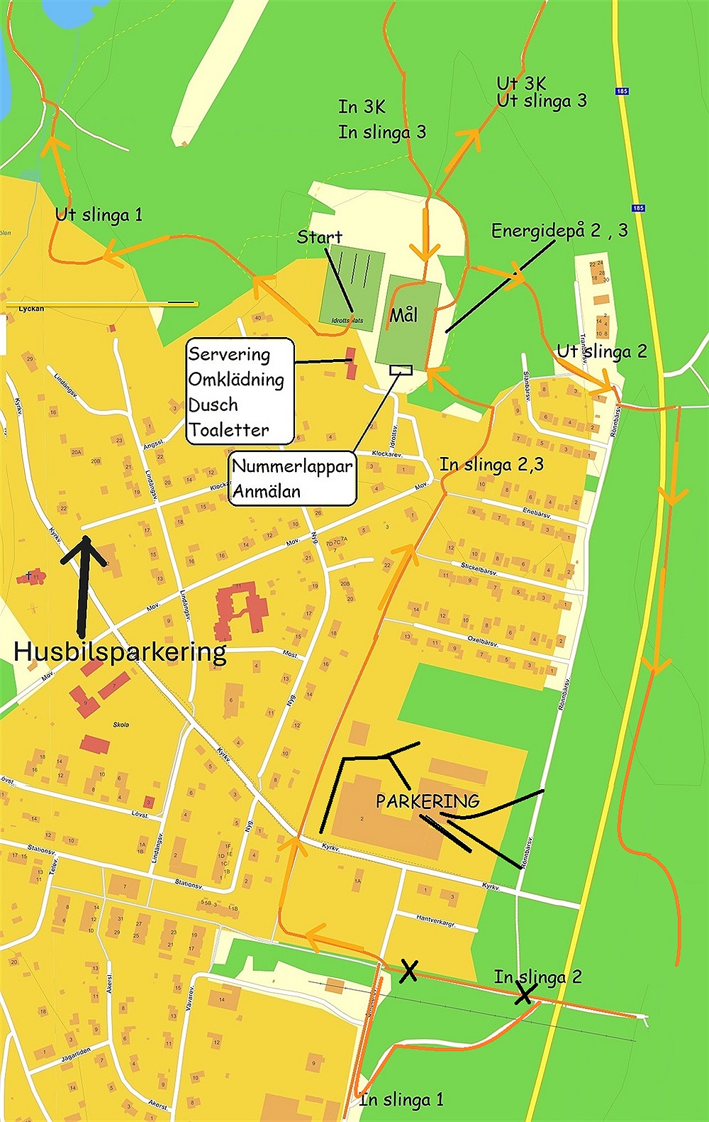 Banan går i tre slingor , 29 + 26+ 6 km där ni kommer passera fyra stycken vätske/energidepåer.